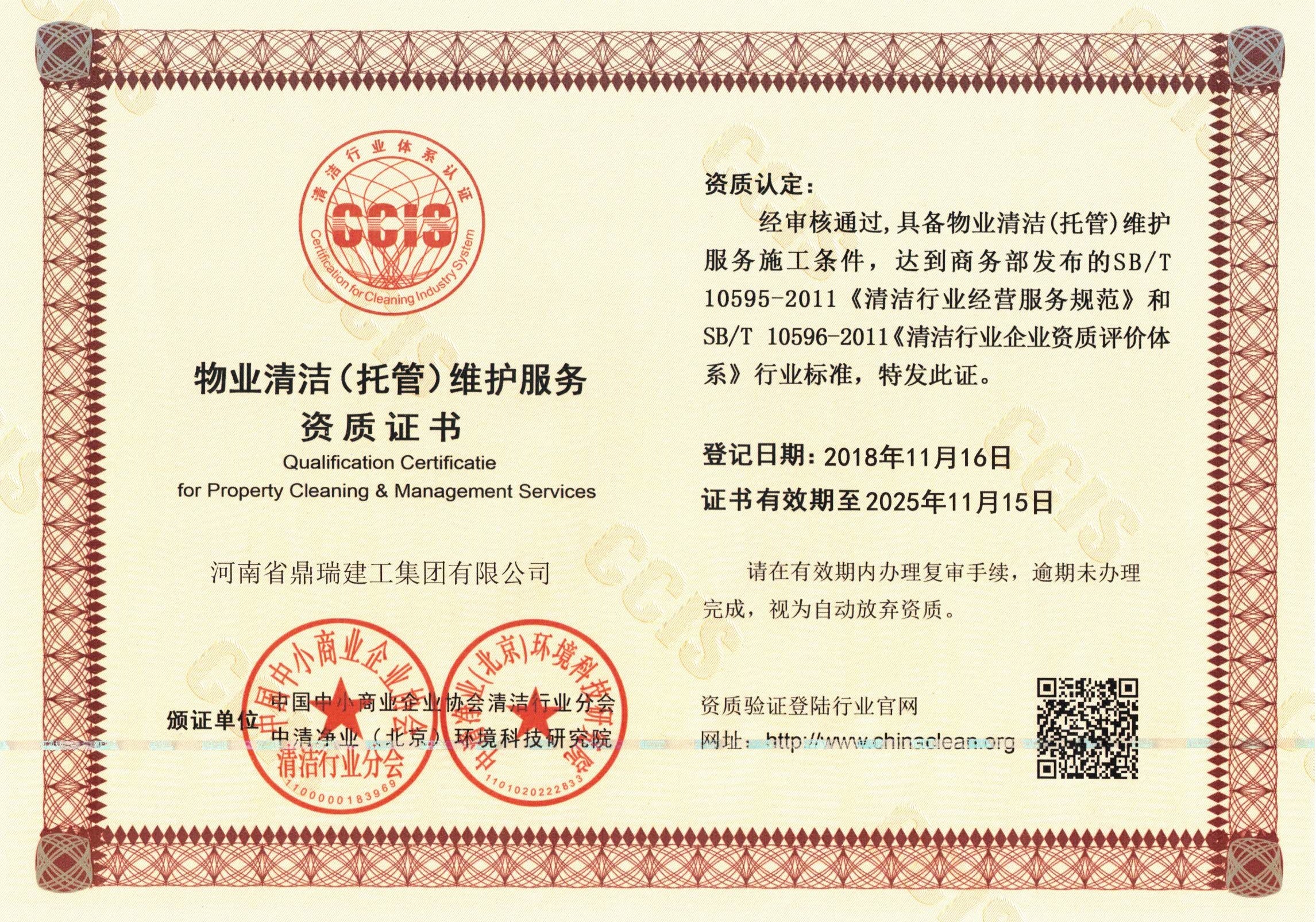 物業(yè)清潔(托管)維護(hù)服務(wù)資質(zhì)證書